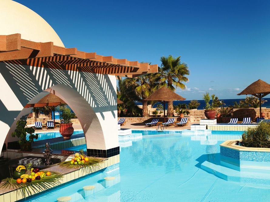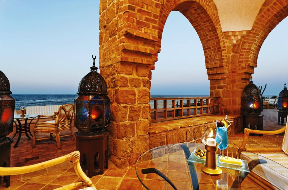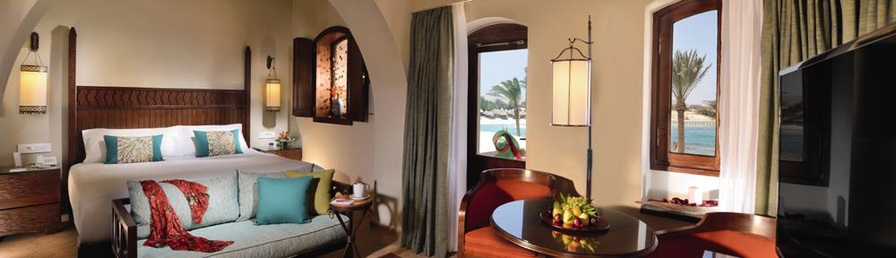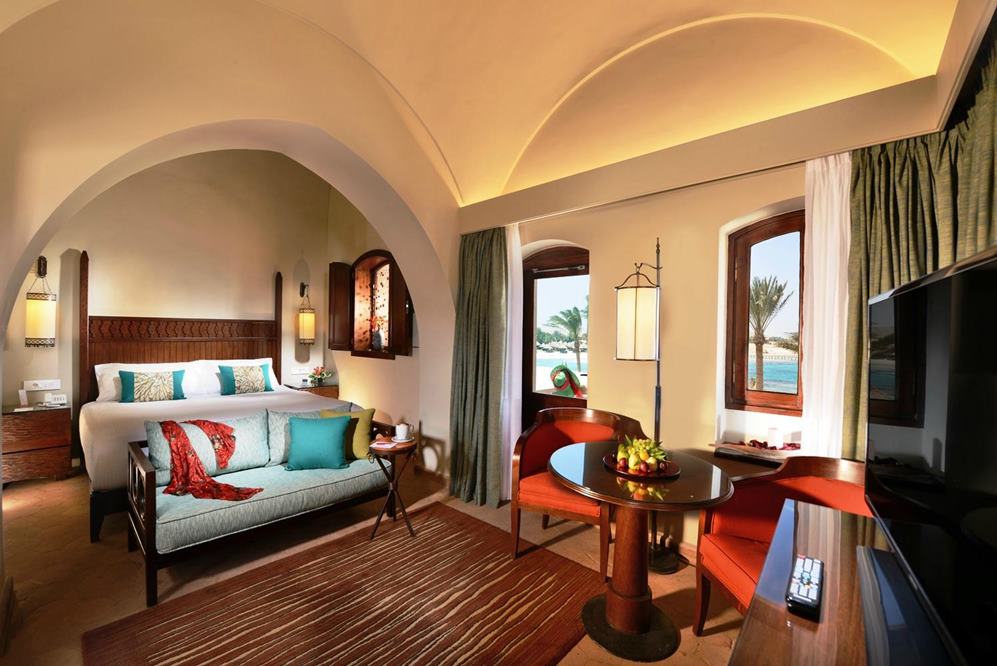 Die aus rötlichem Sandstein im nubischen Stil erbauten Bungalows beherbergen 247 Zimmer. Alle Zimmer haben Meer- oder Gartensicht.