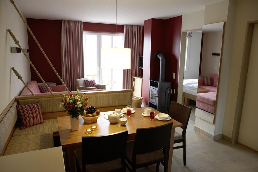 Alle Appartements sind komfortabel eingerichtet und verfügen über einen Wohnraum mit Essplatz, Sitzecke, Sat-TV, Telefon, Safe, Internetanschluss und einen gemütlichen Kaminofen. Die moderne Küche mit Ceranfeld, Mikrowelle, Kühlschrank und Geschirrspüler bietet viel Platz zum gemeinsamen Kochen. Auf Ihrer Terrasse oder Ihrem Balkon können Sie den herrlichen Blick auf die Ostsee geniessen und einen schönen Ferientag ausklingen lassen.