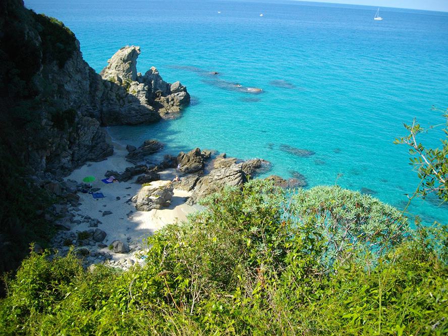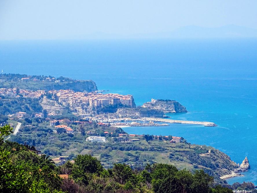 Die Azienda steht exponiert auf einem Hügel, zu Füssen liegen die weissen Sandstrände der Tyrrhenischen Küste, erreichbar über ein kleines Strässchen (3 km). Dank der Lage in 300 m über Meer weht in den heissen Sommermonaten immer eine frische Meeresbrise. Die bekannte, mittelalterliche Stadt Tropea ist nur 10 km entfernt. Ein Lebensmittelgeschäft und Restaurant befinden sich in ca. 2.5 km Entfernung.