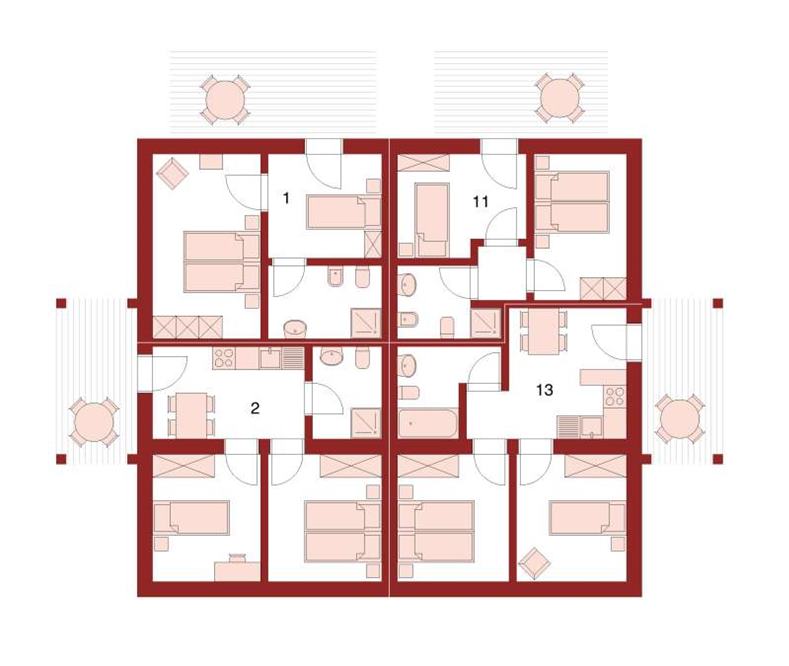 | Familienzimmer, Appartement | HP | 650.- | 690.- | 770.- | 5 | 3 | 2-11 / 12-16 | 50% / 30% | 3 |