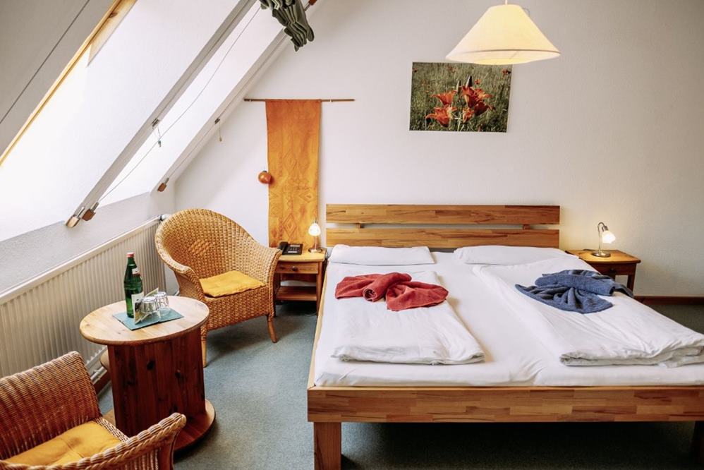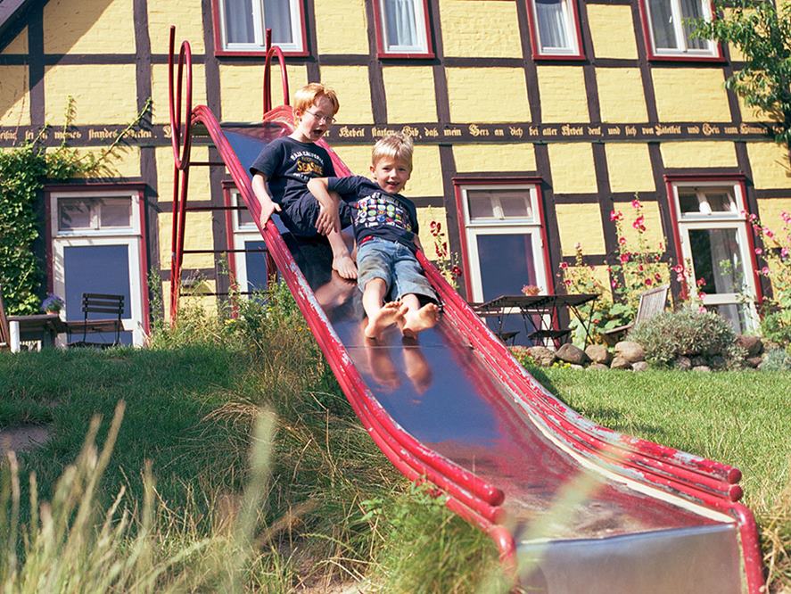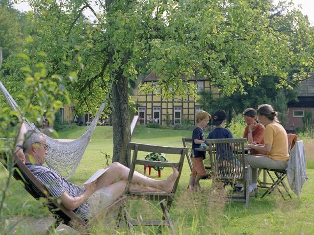 Das Gut war vor vielen Jahren das erste zertifizierte Bio-Hotel in Norddeutschland. Das Essen hat das Biosiegel, stammt also komplett aus kontrolliert ökologischen Lebensmitteln und Wildsammlung. Zweimal im Jahr kommt die Kontrollbehörde vorbei, um Ihnen zu garantieren, dass da wo BIO drauf steht auch BIO drin ist. Für das Haus gibt es zwar kein Siegel, aber auch hier ist die Baubiologie wichtig. Atmende Baustoffe und Farben, geölte Holzoberflächen und Vollholzmöbel finden Sie hier. Das alte Fachwerkhaus ist lehmgelb gestrichen und mit einem modernen Anbau für Küche, Speise- und Seminar- und Wohnräume versehen. Die Familienzimmer sind "natürlich" hell eingerichtet, mit Telefon, WC/Dusche oder Badewanne, auf Wunsch TV, teilweise mit Terrasse. Sie schlafen auf Naturkopfkissen, gefüllt mit Dinkelspelz und Hirse, unter weichen, warmen Wolldecken. Allergiker finden speziell für sie eingerichtete Räume und auch barrierefreie Zimmer bieten wir an. Glashaus, Teeküche und Kaminzimmer laden zum Verweilen ein. Es gibt viel Raum zum Spielen, Reden, Leben ...
